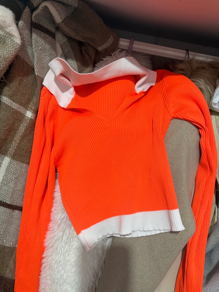 Turuncu Beyaz Yakalı Fit Triko Kadın Kazak