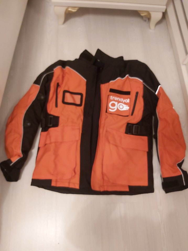 Uzun kollu, bisikletçi tarzı, turuncu erkek ceket. Yumuşak ve sıcak kumaştan, baskılı desenli, velcro detaylı, rahat kesim. Dış mekan ve sokak stiline uygun. sipariş cantasiyla birlikte satacağim .