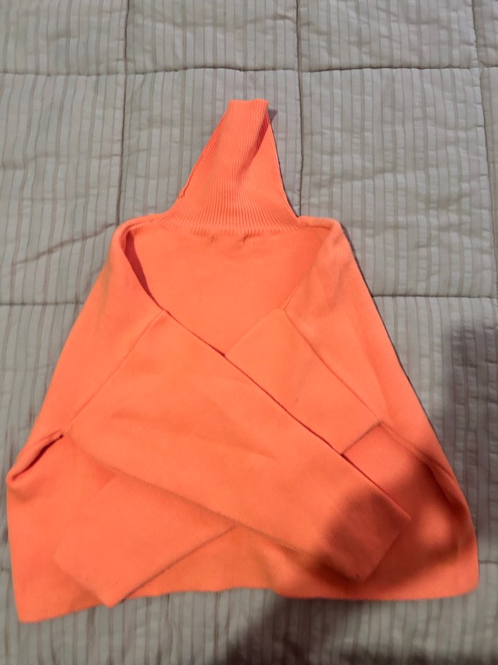 Fitted kesim turuncu kadın triko, boğazlı ve uzun kollu, yumuşak ve sıcak kumaştan. Normal midi boyunda, sade ve günlük kullanıma uygun. Kumaşı yumuşacıktır.