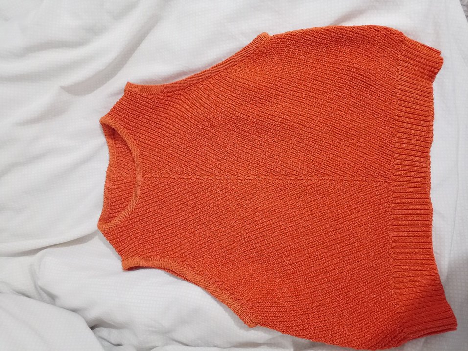 Turuncu, Boğazlı, Kolsuz Triko Kadın Kazak