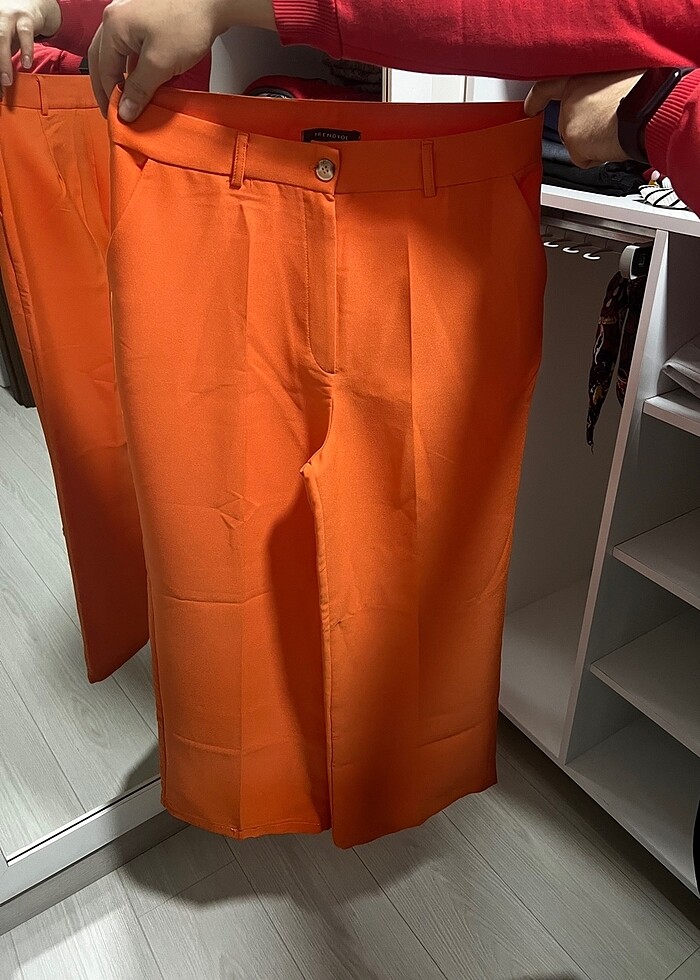 Turuncu bol paça kumaş pantolon