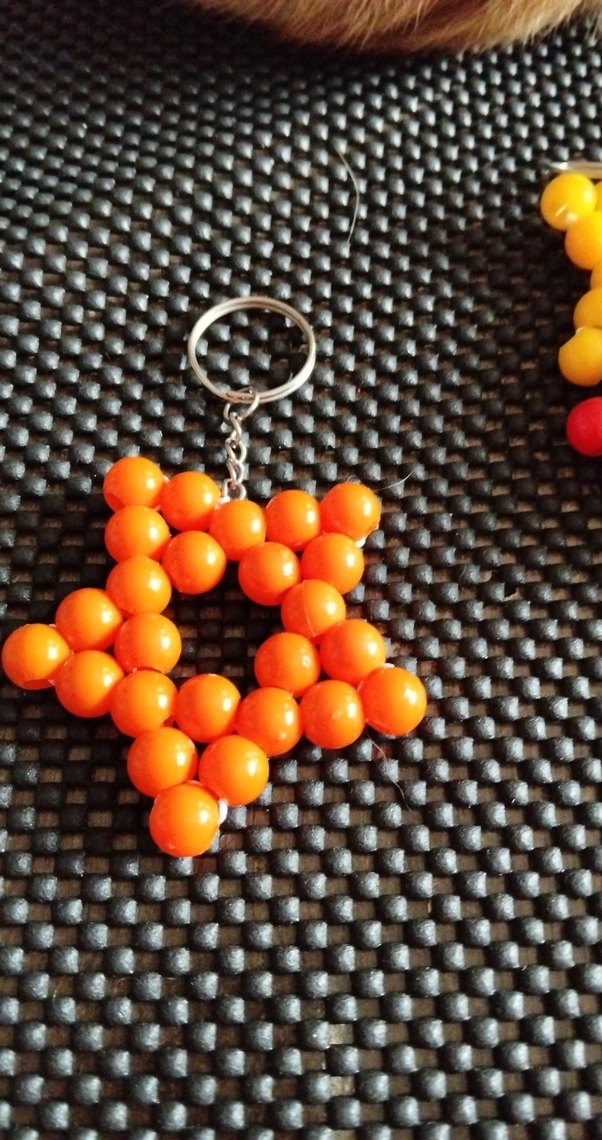 Turuncu boncuklardan oluşan yıldız şeklinde bohem tarzda anahtarlık, minimalist ve retro tarzlara uygundur.
