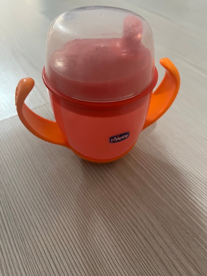 Turuncu renkli Chicco marka, çift kulplu ve koruyucu kapaklı bebek biberonu, kolay kavrama ve hijyen sağlar. Bebeğim az kullandı.Fiyatıbu makul tutuyorum ihtiyaçı olan alsın.