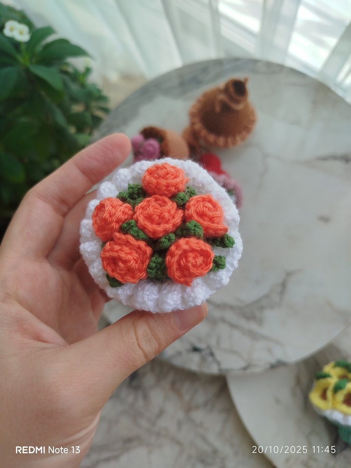 Turuncu Çiçek Desenli Örgü buket anahtarlık charm