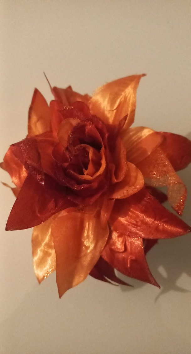 Parlak turuncu renkte, fırfırlı çiçek yapraklarına sahip vintage tarzda bohem saç tokası