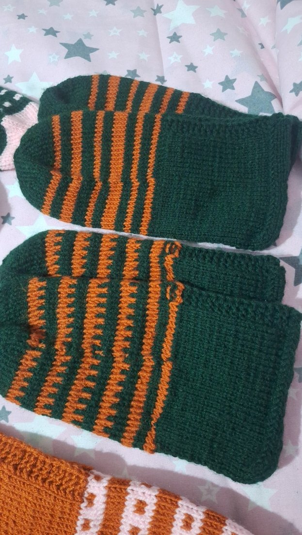 Yeşil zemin üzerine canlı turuncu çizgilerle örülmüş, rahat bir uyum sağlayan kadin çorapları. el emeğidir.0 ürün.36 37 38 numaradir