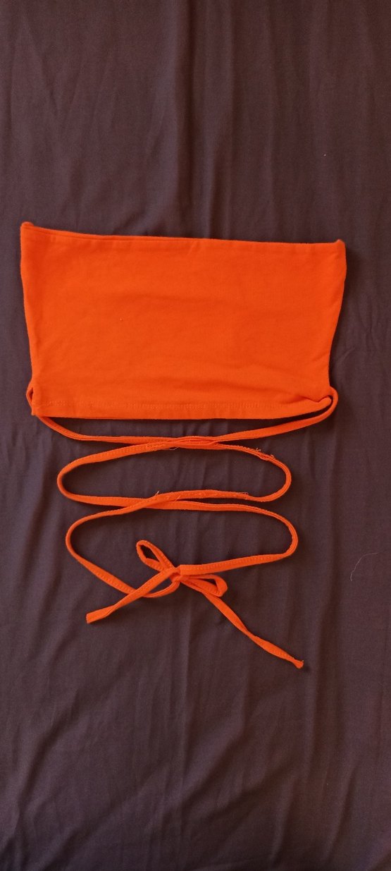 Koyu turuncu renkte belden baglamali crop ayarlanabilir uzun bağcıkları bulunur.