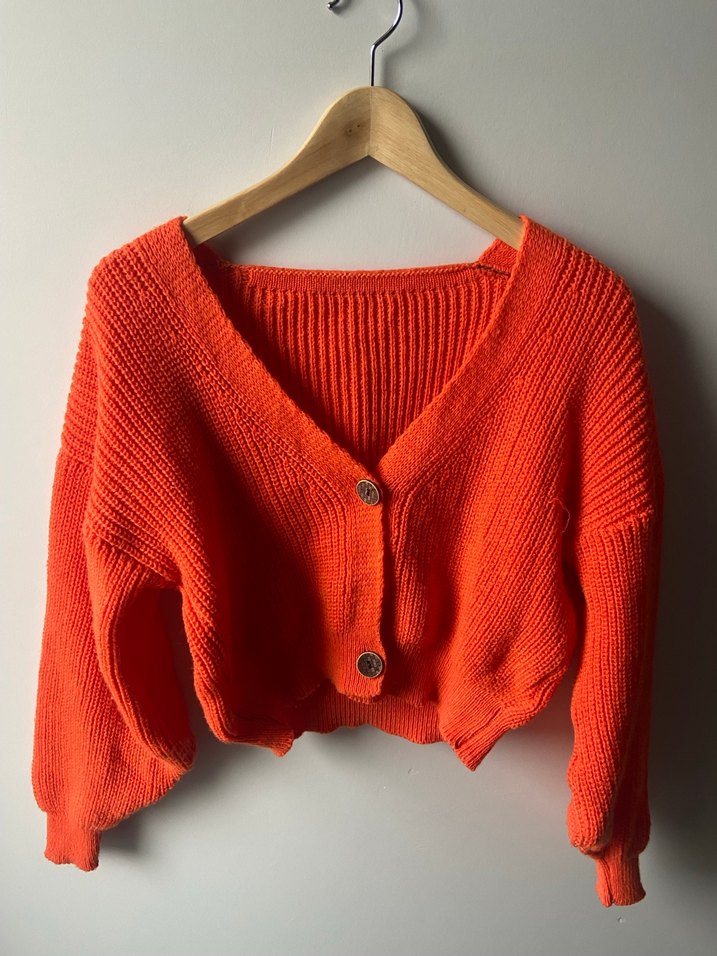 Turuncu Crop Oversize Örgü Hırka