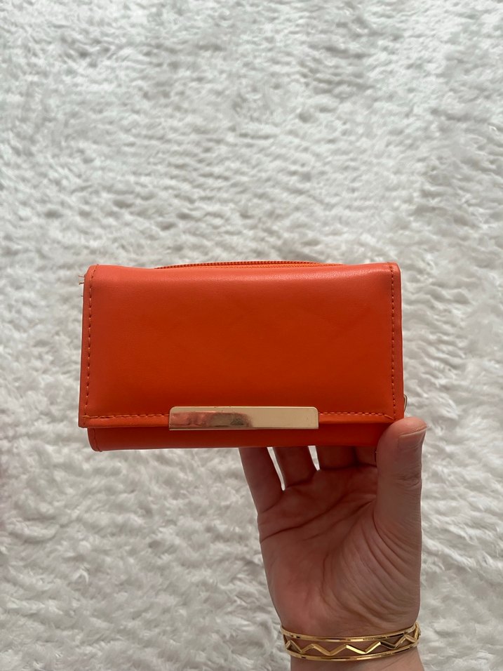 Kırmızı deri kadın cüzdanı, fermuarlı kapanışa ve parlak, çağdaş tasarıma sahiptir. Desensiz ve günlük kullanım için uygundur.