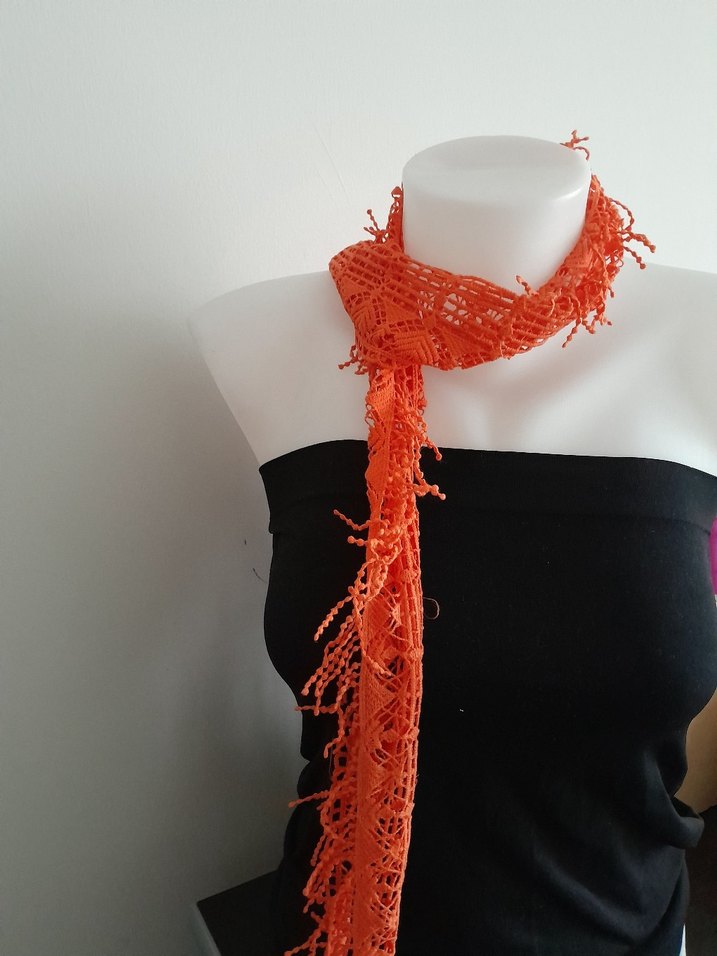 Canlı turuncu renkte, dantel bohem şal. vintage, bohem ve hippie tarzına uygun.