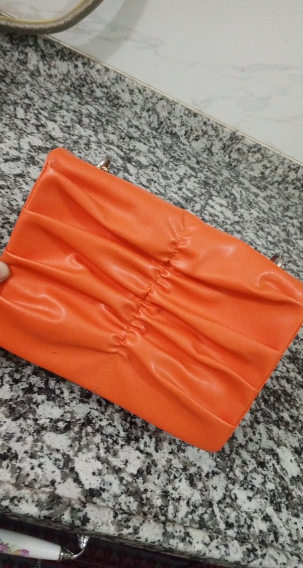 Turuncu Deri Fırfırlı Kadın Çanta