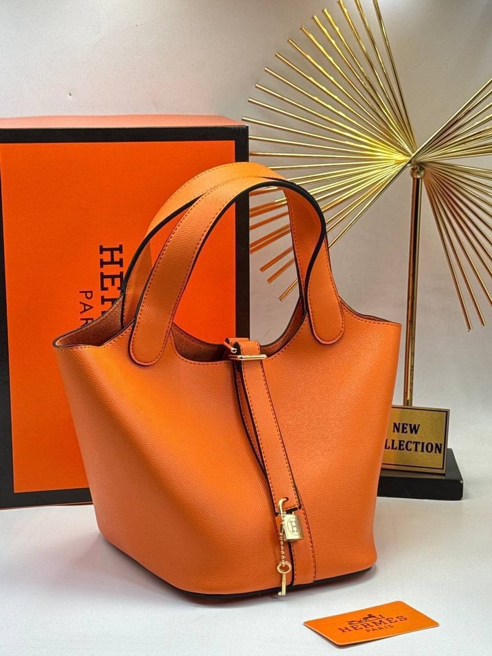 Parlak turuncu deri çanta, tokalı detayları ve baskılı tasarımıyla çağdaş Paris tarzını yansıtıyor. Günlük kullanıma uygun. HERMES PRE-OWNED PİCOTİN MM HANDBAG SIZE ➡️ 21/34 CM linda