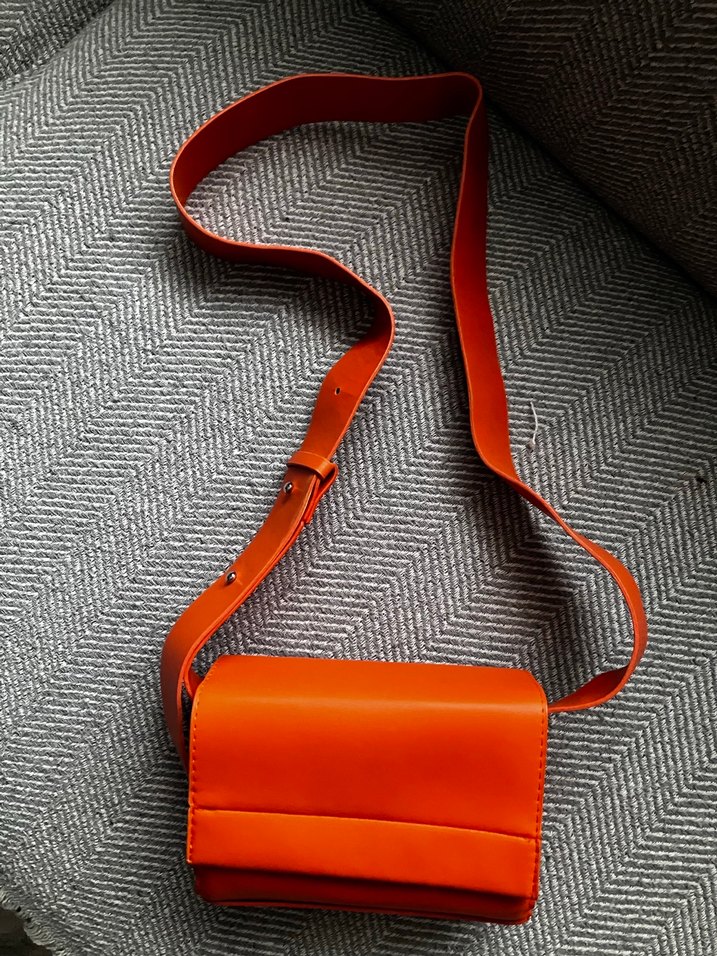 Turuncu, bant detaylı, minimalist tarzda kadın çantasıdır. Sokak modasına uygun ve günlük kullanıma elverişlidir.
