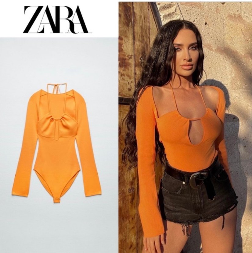 Turuncu deri, V yakalı ve askılı tasarımlı bu fitted crop top, cesur sokak stilini zahmetsiz şıklıkla buluşturuyor.