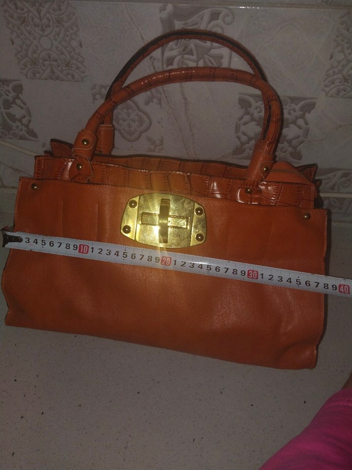 turuncu Deri Vintage Kadın Çanta