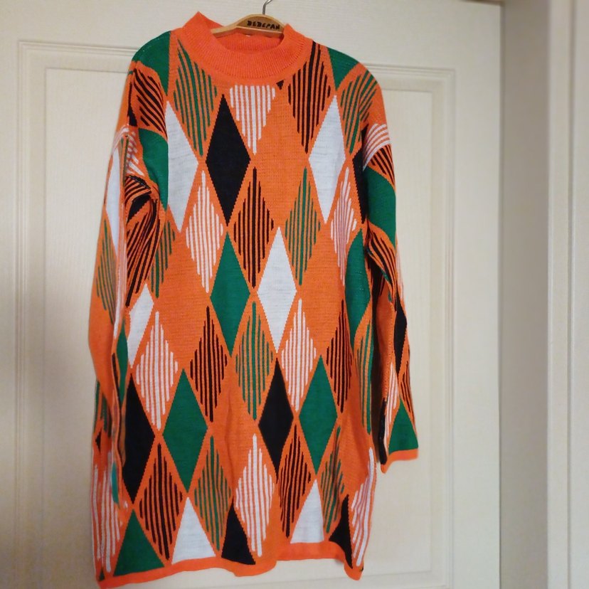 turuncu desenli kazak sıfır yeni uzun tunik tarzı tiriko kazak.