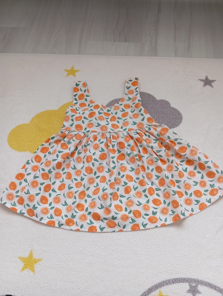 Turuncu Desenli Kolsuz Kız Elbisesi