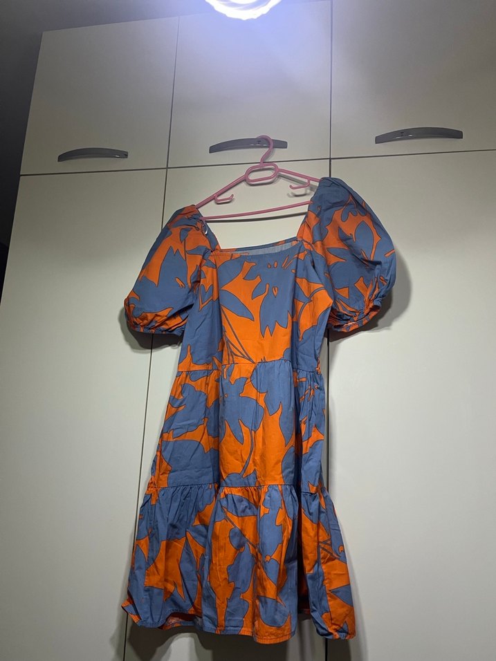 Turuncu Desenli Midi Elbise