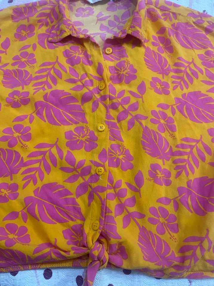 , düğmeli, kısa kollu, yakalı ve bol kesim kız çocuk gömleği. Yumuşak sentetik kumaştan üretilmiştir, günlük kullanım için uygundur.