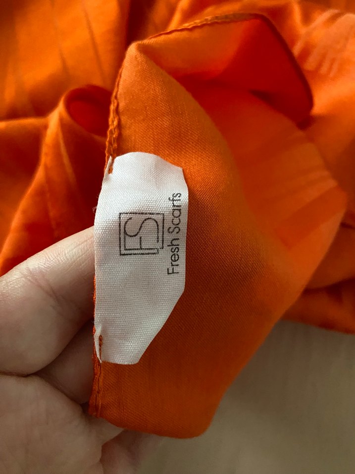 Turuncu renkte, desenli . Fresh Scarfs markası etiketine sahiptir.