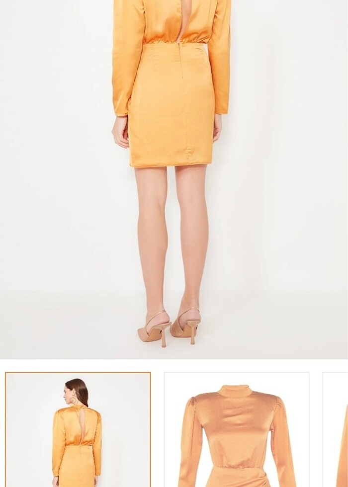 Turuncu Dik Yaka Dokuma Saten Kısa Şık Abiye Elbise