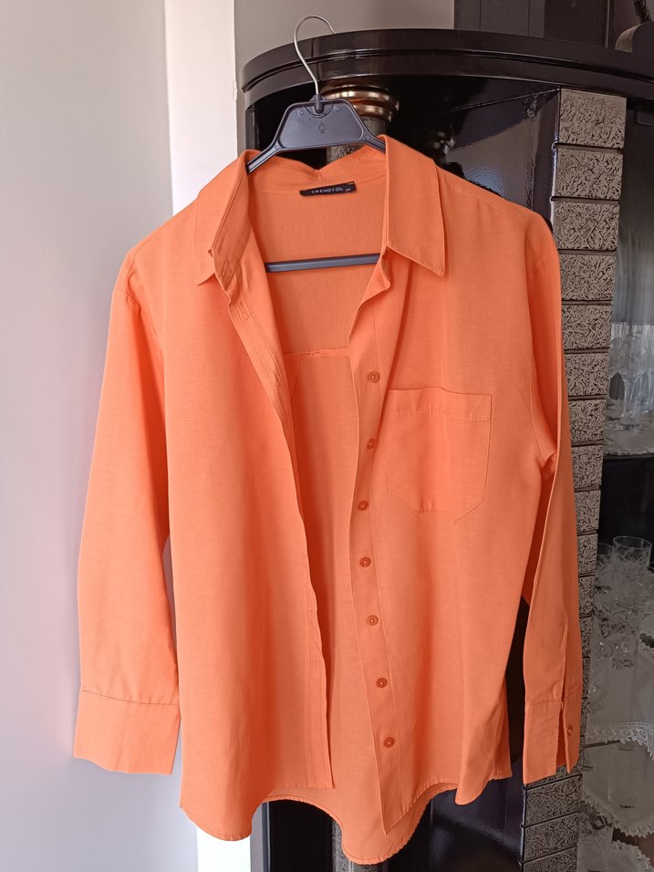 Turuncu Düğmeli Kadın Boyfriend Kalıp Gömlek