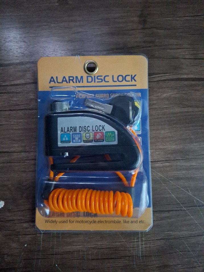 Turuncu elastik bobinli alarm disk kilidi, motosiklet ve elektrikli araçlar için uygundur. Anahtarlı ve koruyuculu tasarıma sahiptir.
