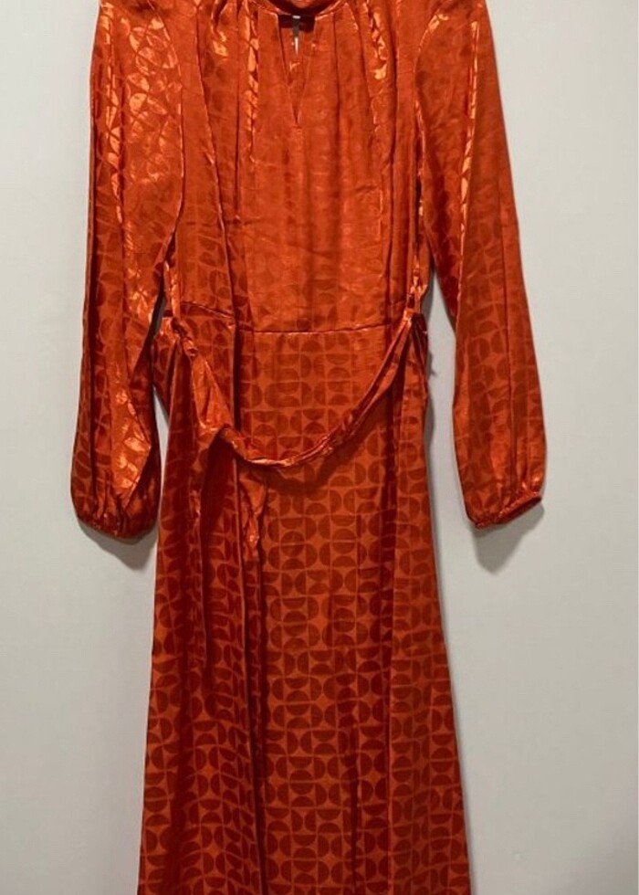 Turuncu parlak gösterişli bi elbise. Temizdir.