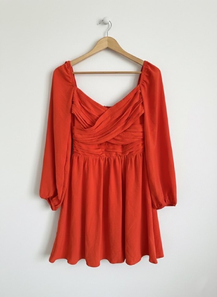 Turuncu uzun kollu, mini boy elbise yeni sezon tek beden hiç kullanılmadı son resme ekledim ön kısımda minik ip çekmesi var