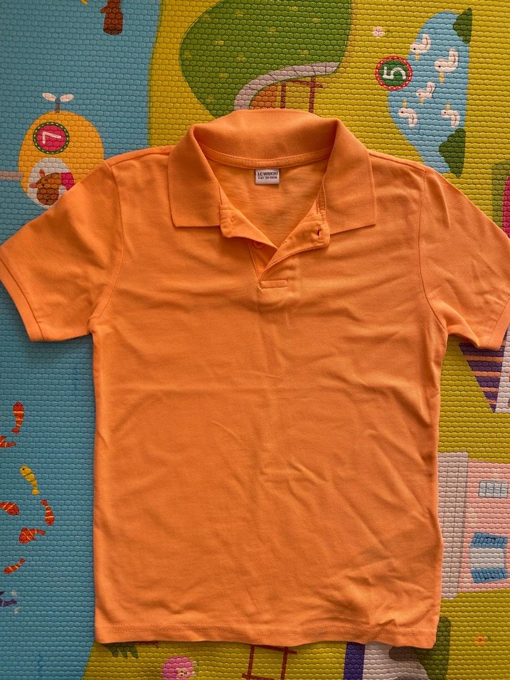 Pamuk kumaştan yapılmış, kısa kollu ve yakalı, turuncu renkli erkek çocuk polo tişört. Sade ve sokak tarzı için uygun, vücuda oturan kesim.
