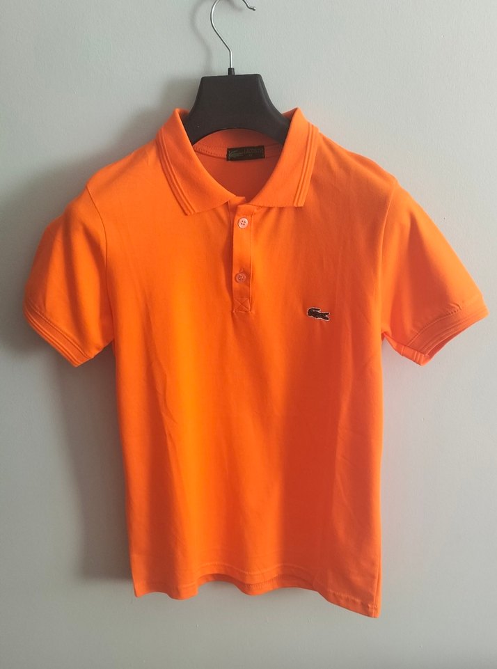 Dar kesim, kısa kollu ve polo yaka olan bu erkek tişörtü, canlı turuncu renkte, rahat ve günlük kullanıma uygundur.