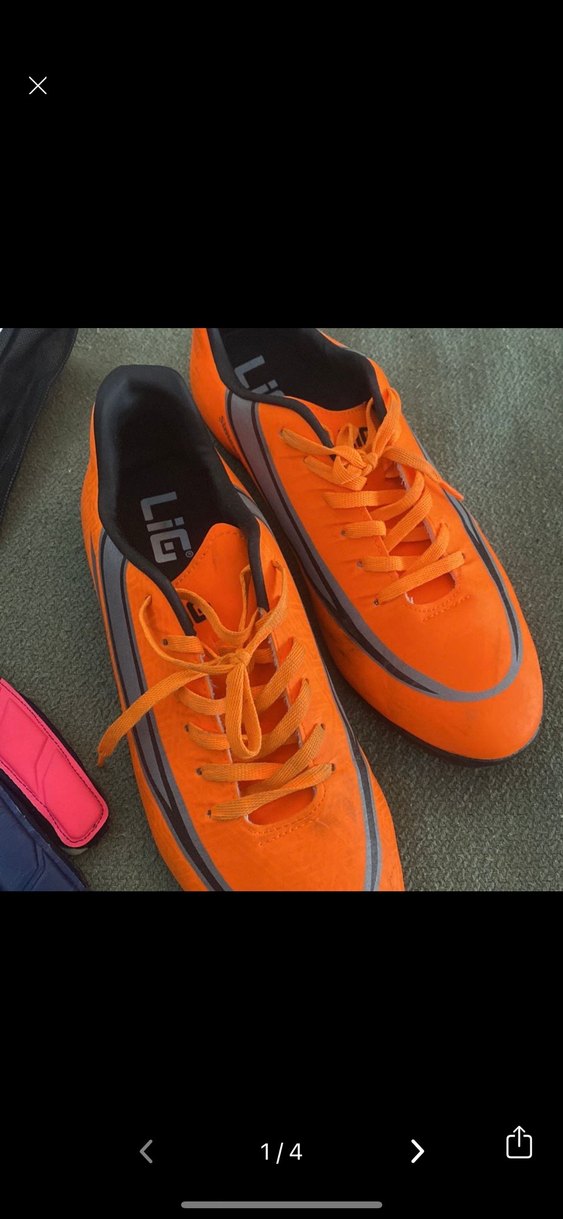 Turuncu renkte, velcro ve bağcıklı kapamaya sahip erkek futbol ayakkabısı, kauçuk malzemeden, sokak stili için uygun.