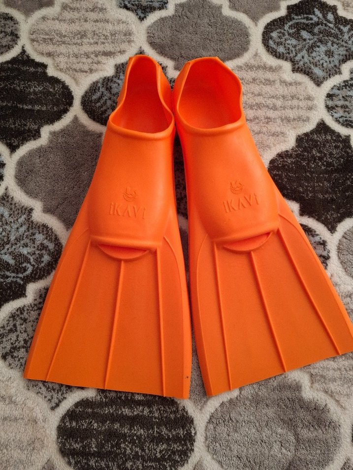 Turuncu renkte, kauçuk malzemeden yapılmış, kayışlı erkek su paleti. Minimalist ve geleneksel tasarıma sahip, plaj için uygun. "KAY" işaretli.
