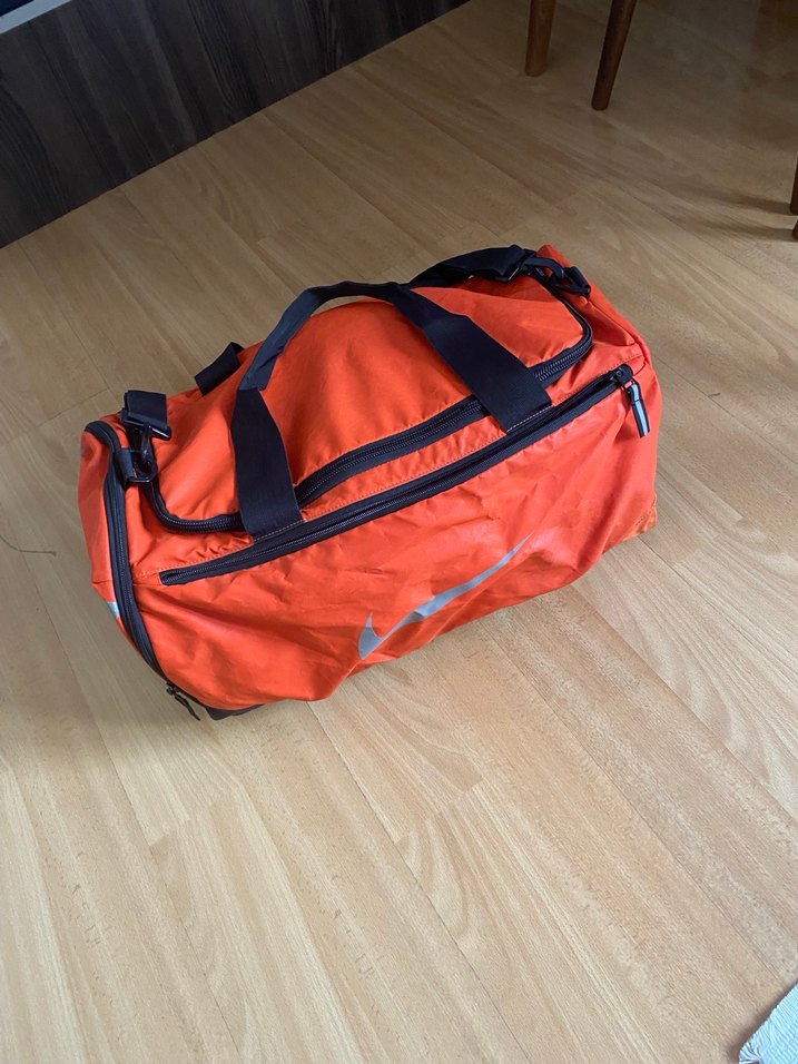 Turuncu renkte, fermuarlı bölmeleri bulunan erkek spor çantası. Siyah tutma kolları ve sade, desensiz tasarıma sahiptir. Boy50 cm en30 cm dir
