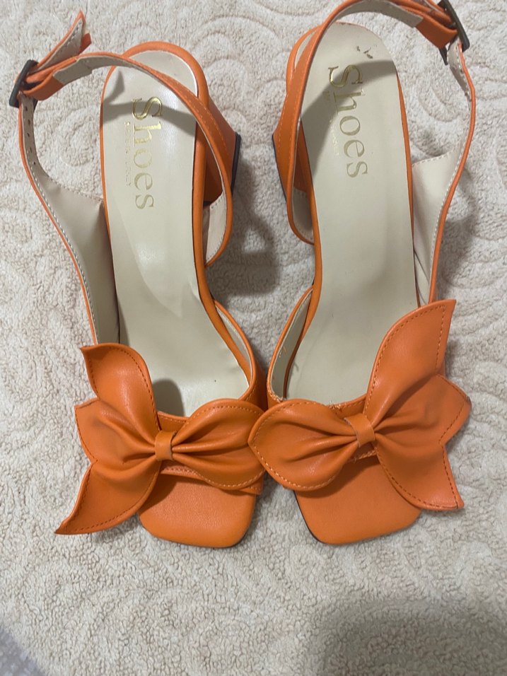 Turuncu Fiyonk Detaylı Blok Topuklu Kadın Stiletto