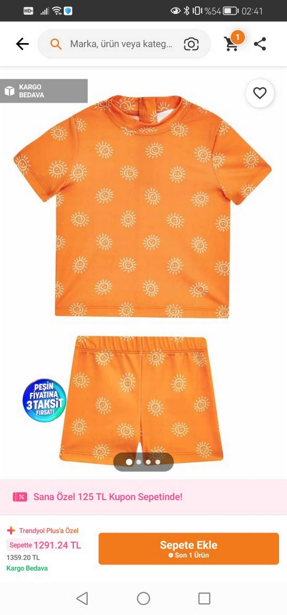 Turuncu renkte, kısa kollu ve güneş desenli erkek çocuk mayo takımıdır. Yumuşak ve rahat kumaşlıdır, plajda kullanıma uygundur. ☀️ Remsa uv korumalı kız erkek çocuk mayo 4 gün tatilde 4 kere giyildi 6 12 ay