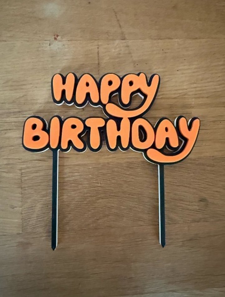 Turuncu renkli, büyük harflerle "Happy Birthday" yazılı pasta süsü, parti dekorasyonu için uygun .