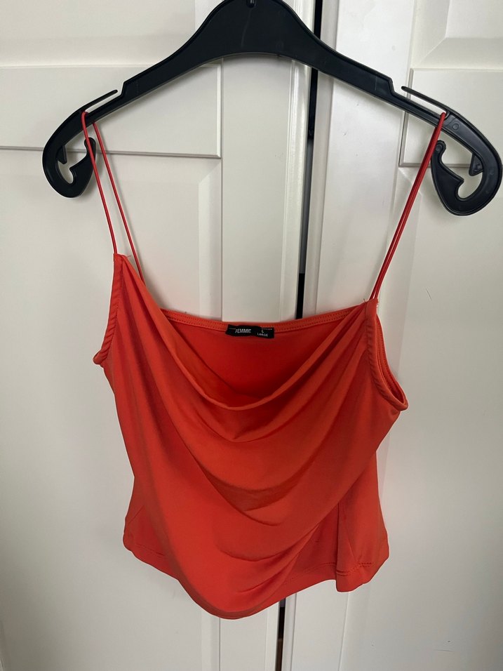 Turuncu İnce Askılı Drapeli Bluz