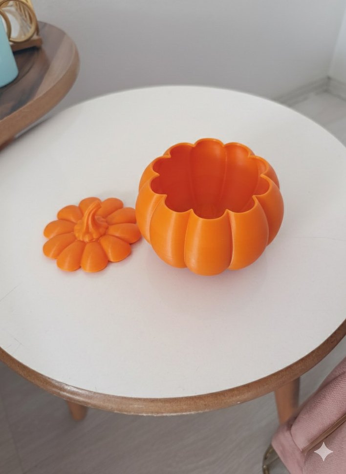 Renkli tasarıma sahip, kapağı çıkarılabilir turuncu kabak şeklinde kutu