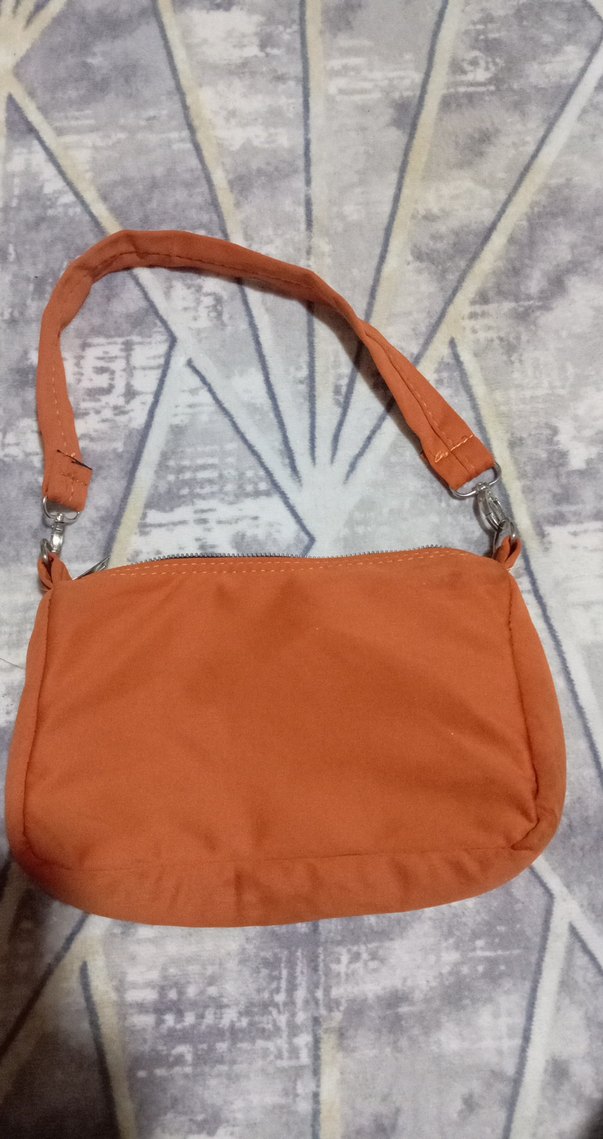 Turuncu sentetik kumaştan, tokalı askıya sahip minimalist tarzda kadın omuz çantası. Günlük kullanıma uygun.