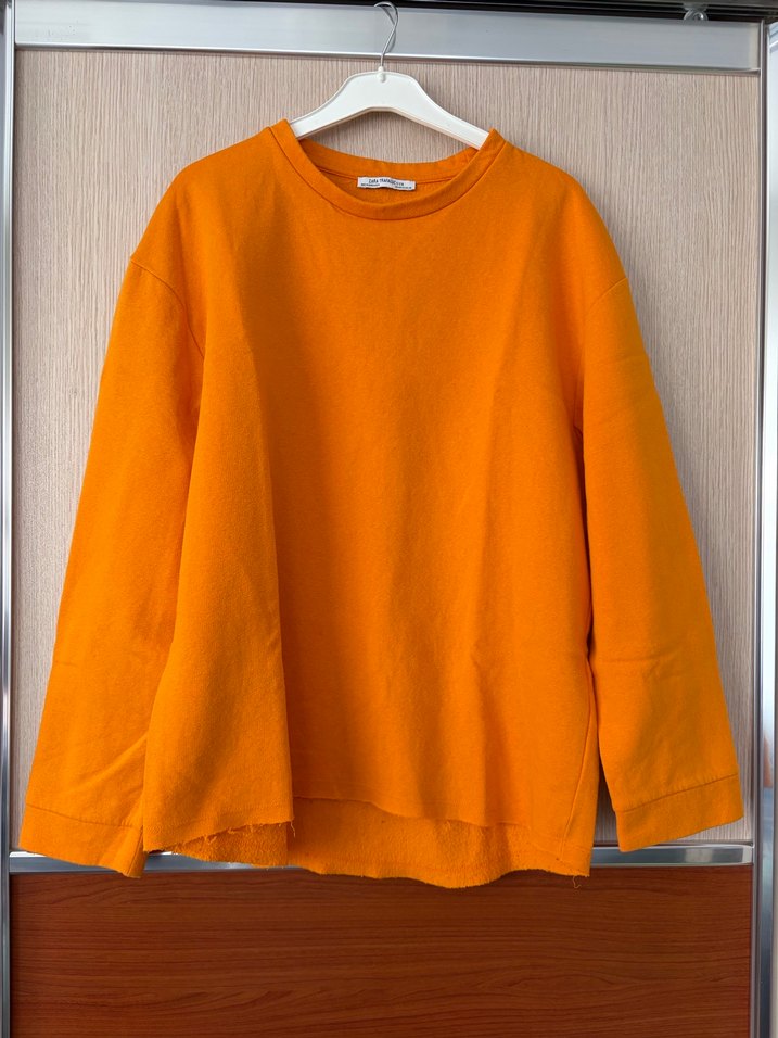 Uzun kollu, yuvarlak yakalı ve bol kesim turuncu kadın sweatshirt. Minimalist ve renkli tasarımıyla günlük kullanıma uygundur.