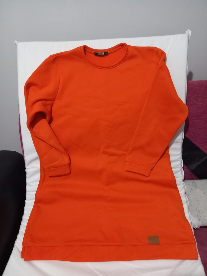 Turuncu Kadın Sweatshirt Tunik Uzun Kollu