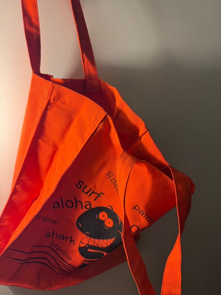 Yanları ve alt zemin kısmı köprülüdür. Ölçüler: 36 x 31,5 x 9 cm. Askı genişliği 2,5 cm dir. Canlı turuncu renklidir. Deniz çantası, alışveriş çantası çok amaçlı ️