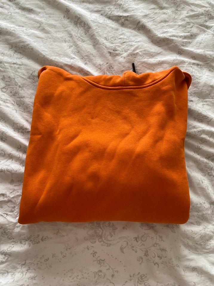 Turuncu renkte, kapüşonlu ve uzun kollu, bol kesim kadın sweatshirt. Yumuşak ve sıcak kumaştan, sade ve desen içermeyen tasarımıyla günlük kullanıma uygun, rahat bir sokak stili ürünü.