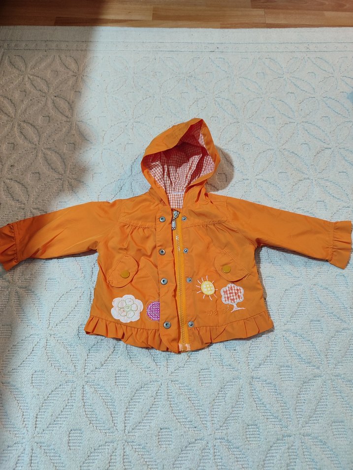 Turuncu Kapüşonlu Nakışlı Kız Yağmurluk