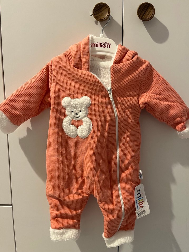 Turuncu Kapüşonlu Unisex Bebek Tulum
