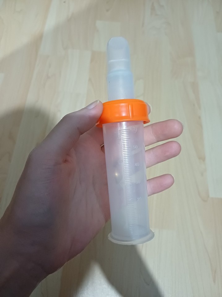 Saydam gövdeli, ölçü işaretli ve turuncu renkli kapaklı bebek biberonu. Rahat besleme için yumuşak emzik içerir. 60ml biz kullandık memnunduk şu an ihtiyaç kalmadığı için satıyorum