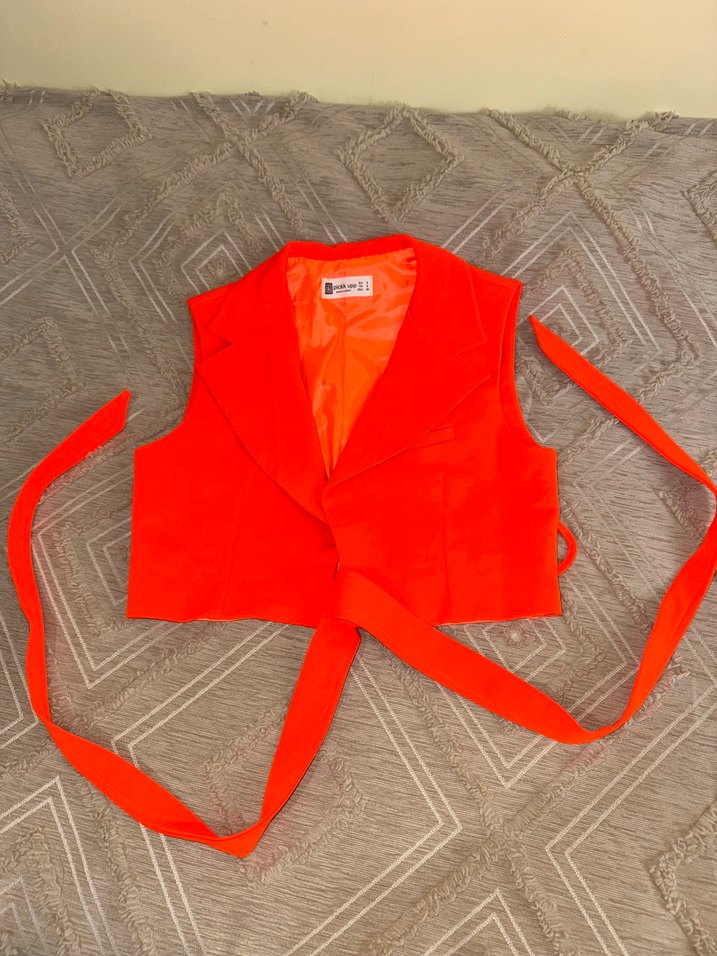 Turuncu Kemerli Kolsuz Mini Yelek