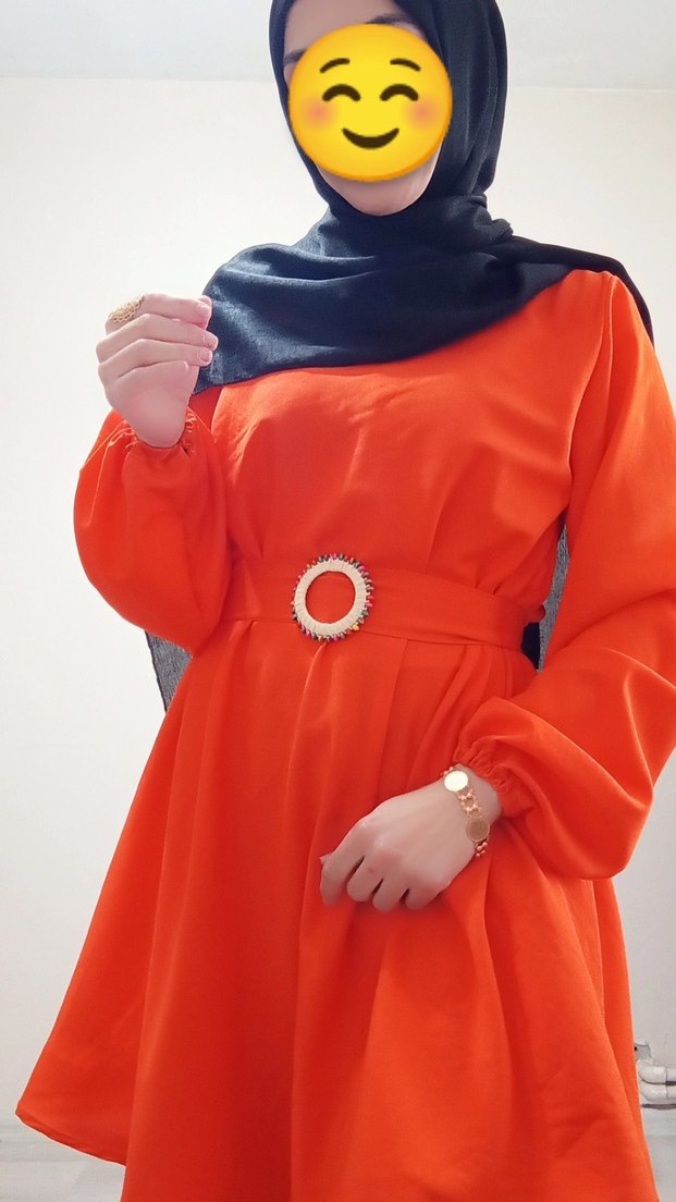 Turuncu, uzun kollu, bisiklet yaka tuniğimiz Bol kesim ve kemerli bel ile tasarlanmış. keyifli alışverişler dilerim☺