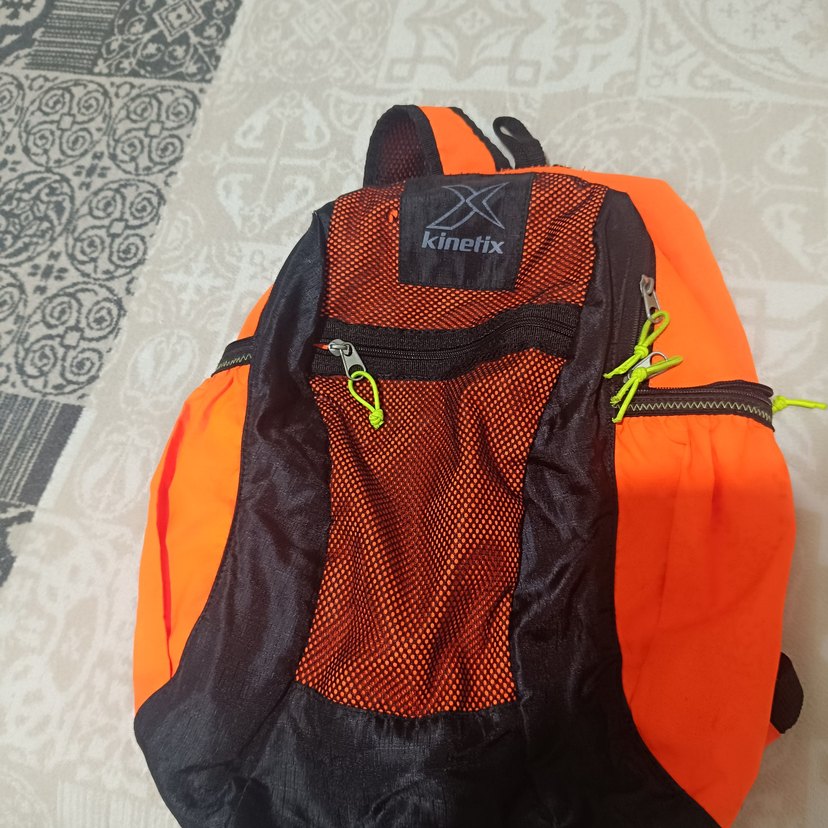 Kinetix marka, fermuarlı, turuncu renkli, baskılı desenli kadın sırt çantasıdır. Sentetik kumaştan üretilmiş, dış mekan kullanıma uygundur ve trend casual biker stilindedir.
